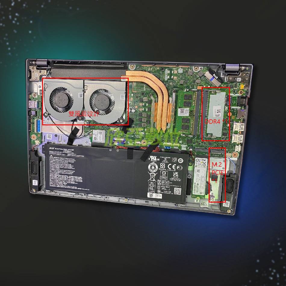 SSD硬碟:512GB PCIe NVMe SSD / 共兩個插槽,已使用1個